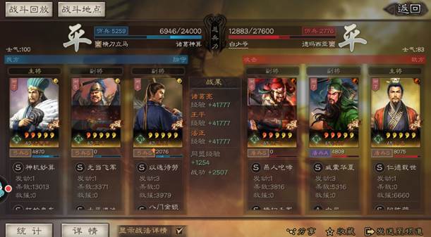 8回合7次落雷,司马懿操控雷电确实有一手。司马懿自身智力、统率成长很高,即便战法不全难以凑成魏法盾,让司马懿带主动战法来打伤害也是个不错的选择。