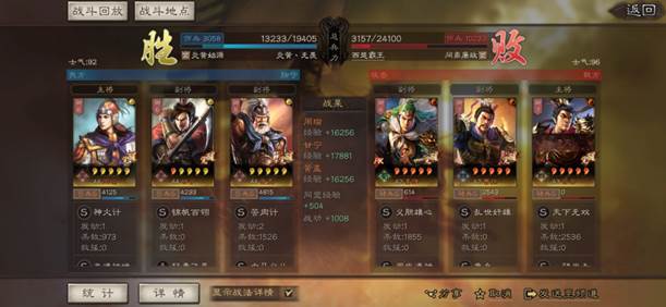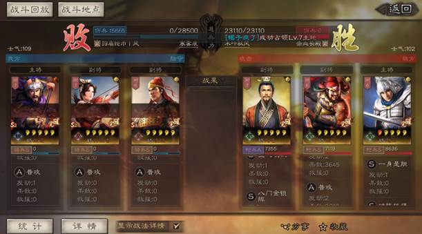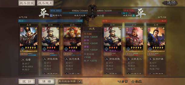战斗2回合,张辽、孙尚香、凌统三人一共只打出1次普攻,刘张赵三人一兵未死,伤害都去哪了?说好的凌统先攻呢?说好的孙尚香不怕缴械呢?没有郭嘉的辅助,菜刀队随时沦为战功宝宝。